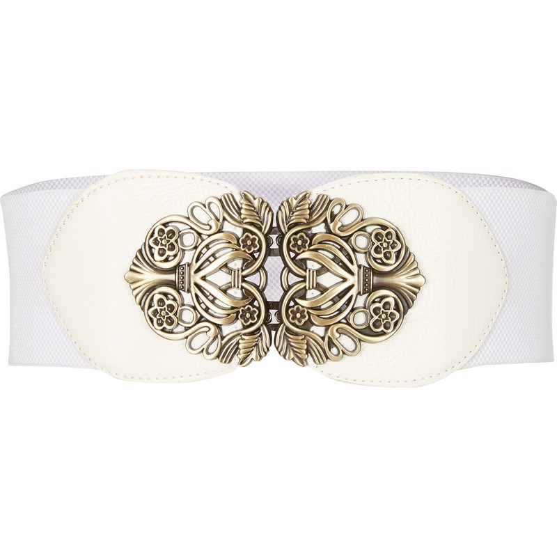 BlackButterfly 3 Pulgada Amplio Faja Elástico Vintage Hebilla Cintura Cinturón (Blanco, Extra Grande)