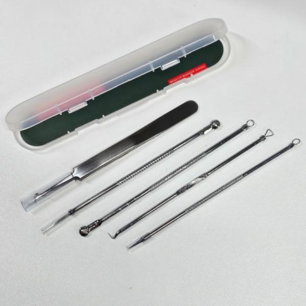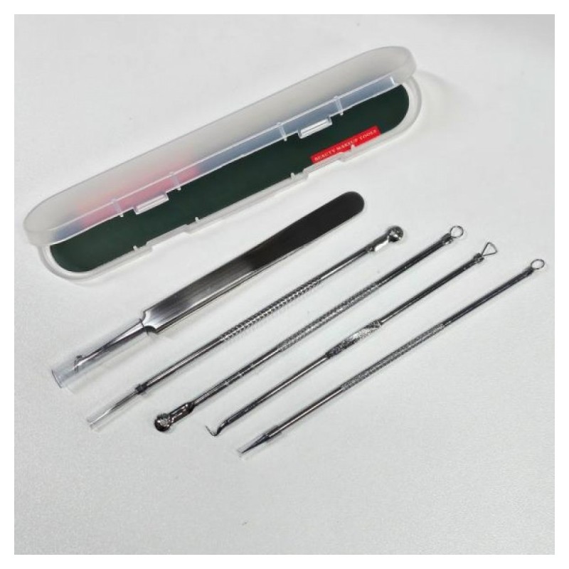 Blackhead and Sebum Extractor 5-Piece Set Includes Case 2ea