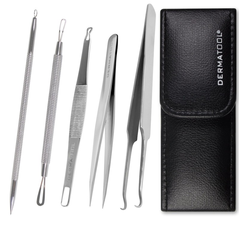 - ✅ PROFESSIONAL BLACKHEAD REMOVER KIT — DERMATOOL Extractor Complete Tool Set provides you with skin care at home meeting the standards of Dermatology and Esthetician equipment. Each Pimple Extractor is designed to help even those with Acne Prone Skin including Blackhead Tweezers to remove Blackheads. Different sized Wire, Flat Loops and a Pimple Popper Tool has a Needle Extractor and Pointed Tweezers for any Ingrown Hair Unlike other lower quality brands compromising with your skin.