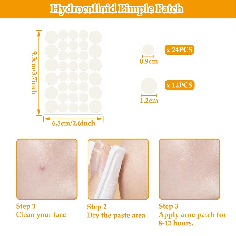 - Invisible acne patches: we also offer transparent anti-pimple patches, they are thin and invisible, blend seamlessly into the skin and are suitable for use day and night.