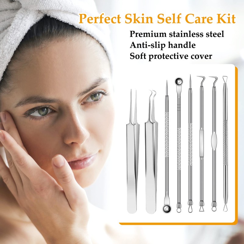 - Easy to carry: the blackhead removal tool set is packed in a portable PU bag, for each needle tip there is a cover bus plastic that protects it from injury.