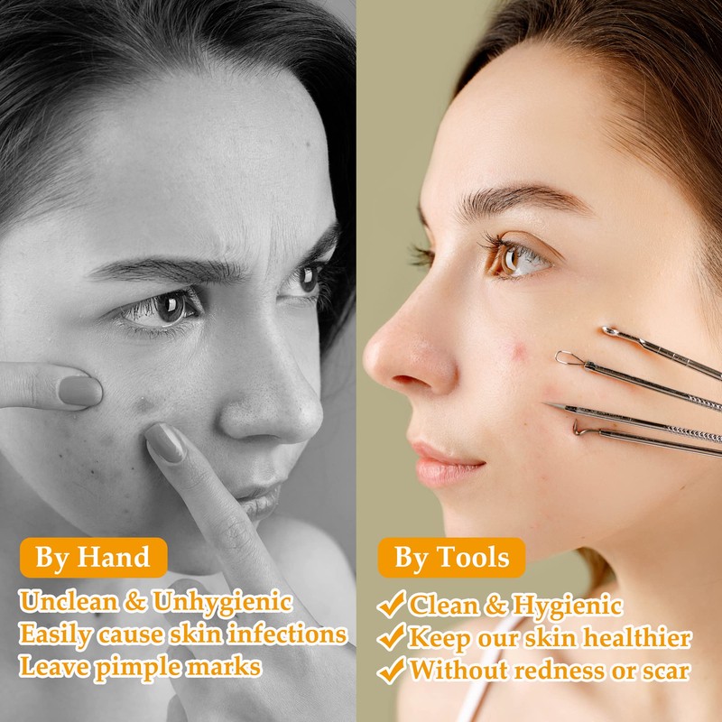 - Applicable skin: Our pimple extractor tool can be used for all skin types such as greasy, dry and sensitive skin. Effortlessly removes blackheads, acne and various blemishes.