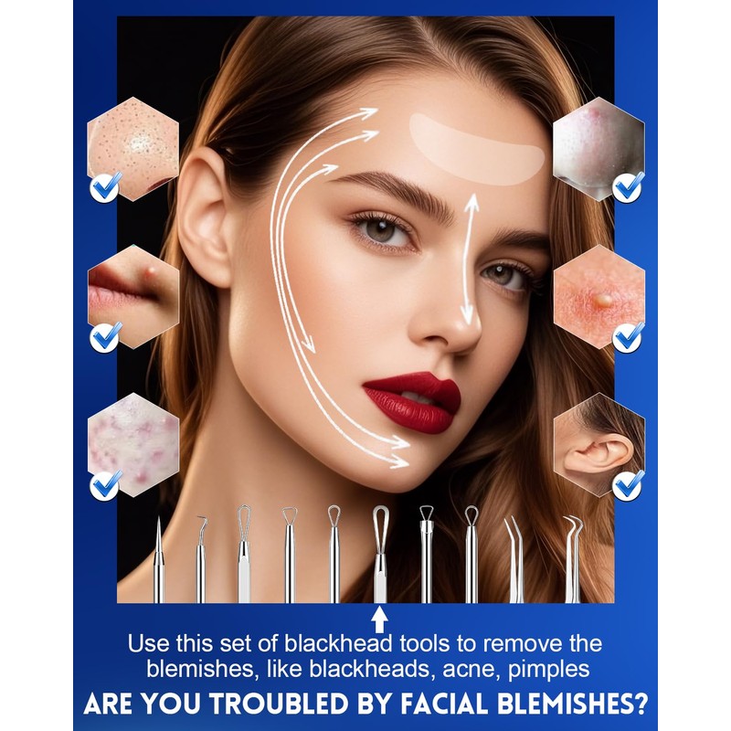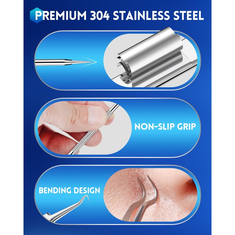 - 【Precautions】We recommend using stainless steel extraction tools after the acne is mature enough, and please wipe all tools with alcohol before and after each use.NOTE: Please keep it away from children to avoid accidental injury.