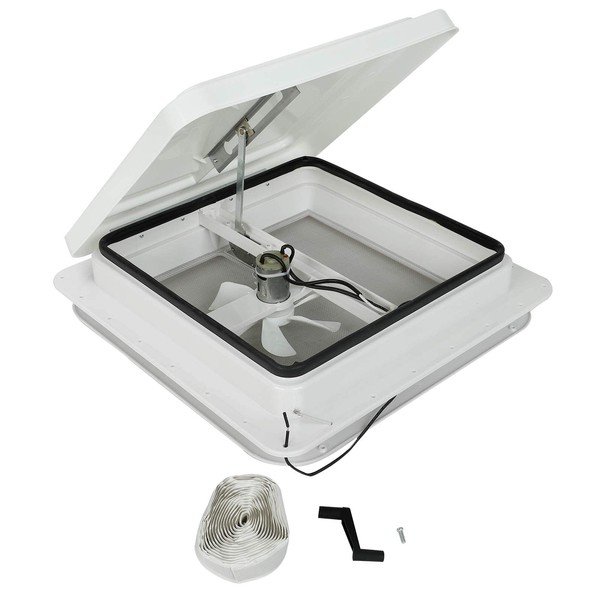 BLACKHORSE-RACING 14" RV Roof Vent Fit for Camper Trailer Universal White Lid Roof Vent with 12V RV Vent Fan 6" Blades White lid Inner for Garnish Ring