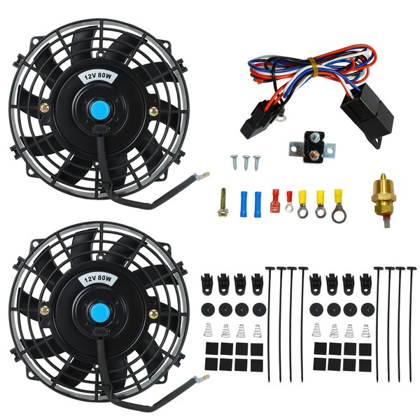 BLACKHORSE-RACING 7" Electric Radiator Cooling Fan w/ & Thermostat Relay & Mounting Kits(2 Pcs)