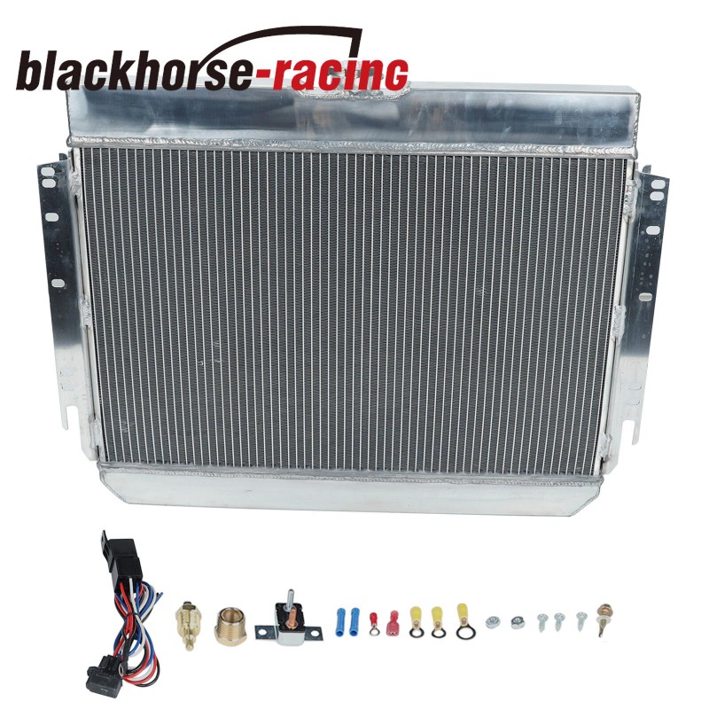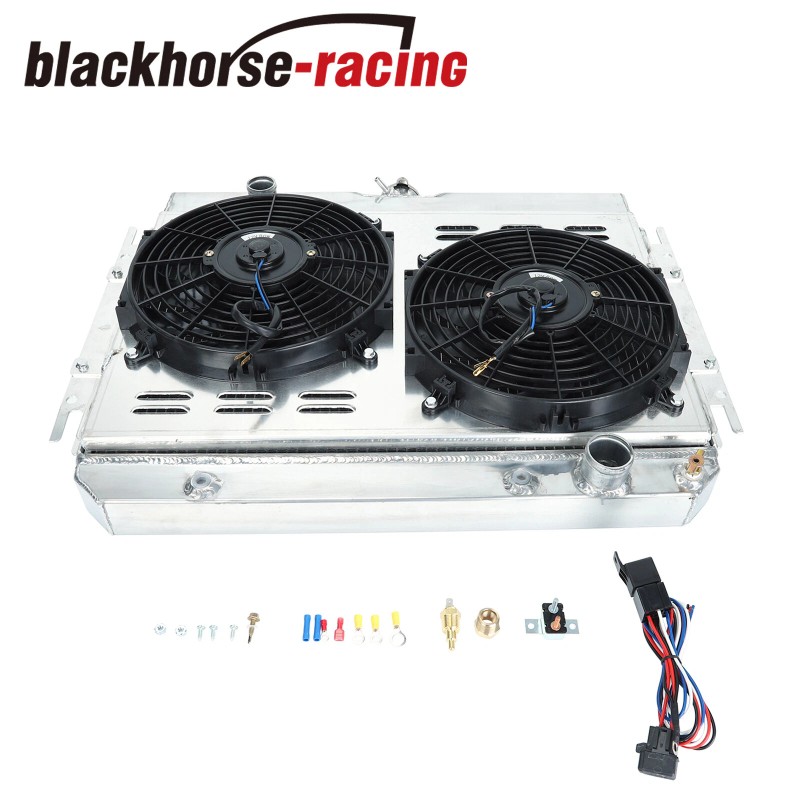 BLACKHORSE-RACING for 1963-1968 Chevy Impala 1964-1967 EL Camino 3Row Aluminum Radiator Shroud Fan