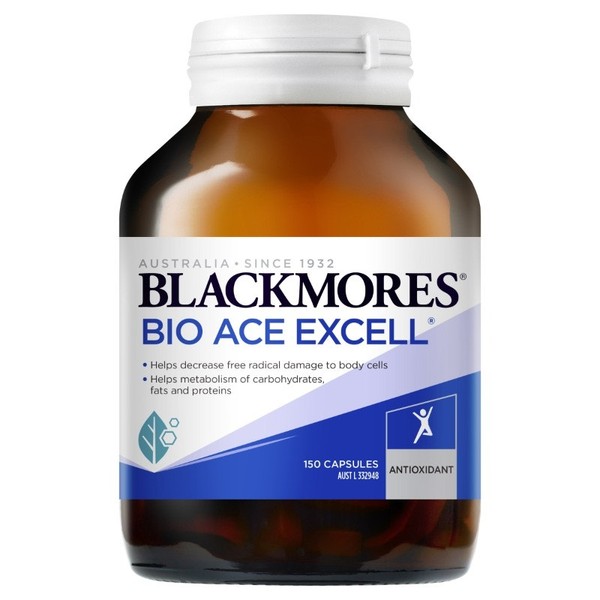 Blackmores Bio Ace Excell is specifically formulated with grape seed, milk thistle, vitamin C, Vitamin E, Zinc and an organic form of selenium plus other antioxidants to decrease free radical damage to body cells.