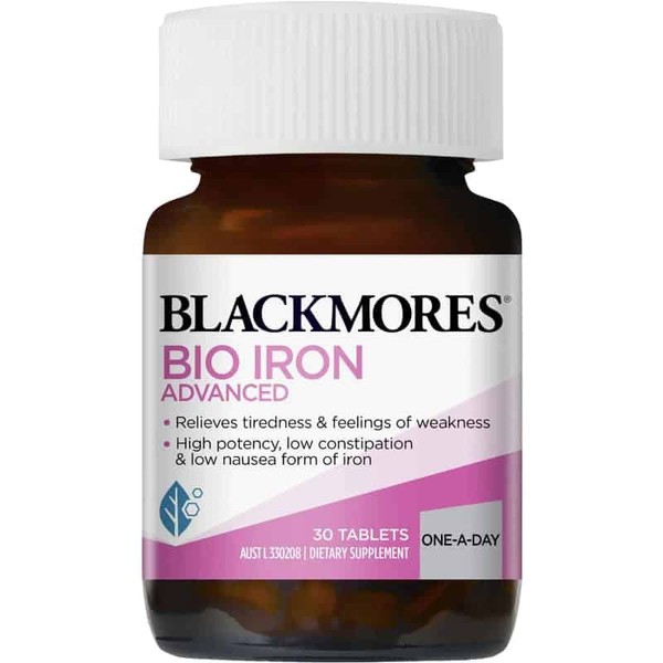 Blackmores Bio Iron Advanced formula contains iron bisglycinate which is better absorbed than some other forms of iron, such as ferrous sulphate, if taken with food.