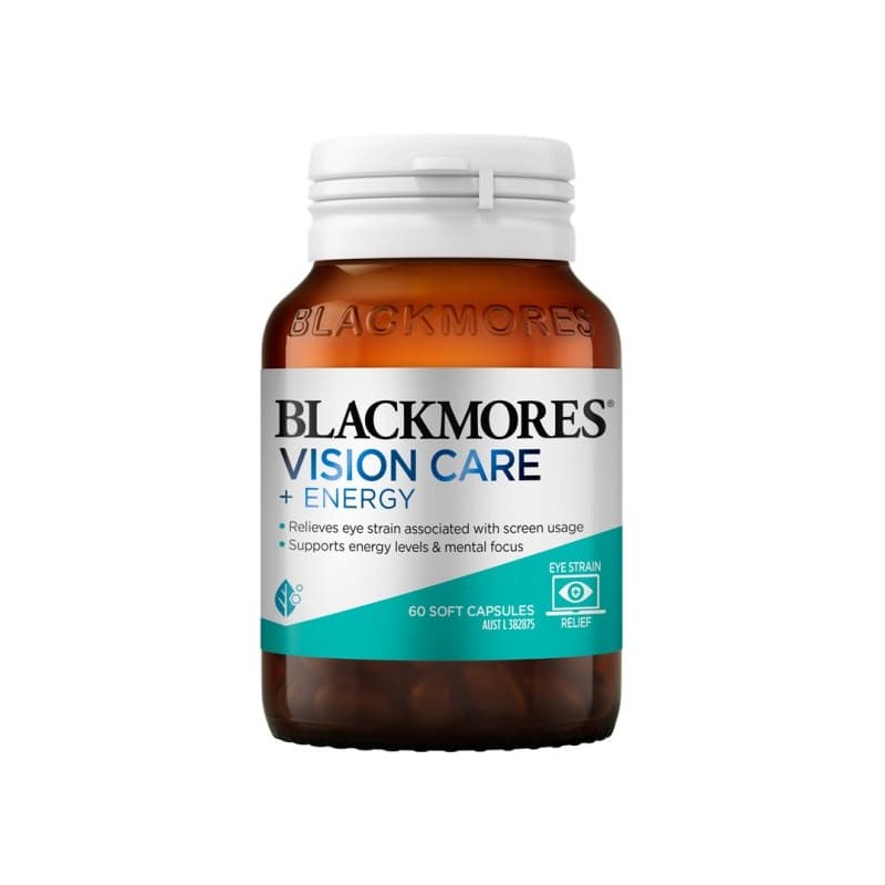 Blackmores Vision Care + Energy is formulated with quality ingredients selected for purity and a free form of lutein. Relieve eye strain and keep focused with Blackmores Vision Care + Energy.