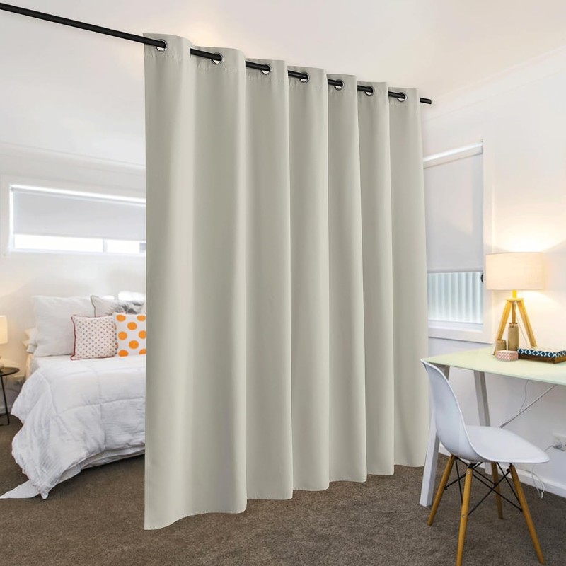 Blackout Room Divider Curtain, Soundproof Privacy Screen Curtains Partitions Shade for Share Space Kids Nursery Bedroom, Wide 100 Inches X Long 84 Inches, Natural, 1 Panel