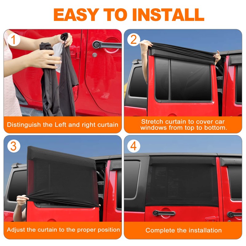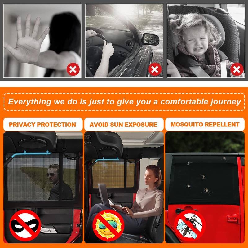 Blackout Shades for Car Side Windows, Car Window Sunshades Rear Custom Fit for Jeep Wrangler Jeep Cherokee Compass Grand Cherokee Liberty Renegade Rubicon Gladiator JT (2 Pack)