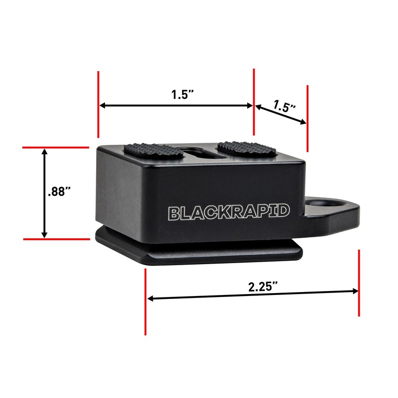 If you use a BLACKRAPID camera strap and an Arca-Swiss tripod, then you need this camera plate. It allows you to stay connected while using both camera strap and tripod at the same time. No need to disconnect the strap when you put your camera on your tripod. Go back and forth from camera strap to tripod, without disconnecting the strap. This camera plate attaches to the tripod adapter on the bottom of your camera (or lens if you have a long lens with tripod connection point). And it works with any tripod with an Arca-Swiss head and any BLACKRAPID camera strap with a carabiner connector. Made in the USA. Made of 6061 aluminum with an anodized coating. Measures 1.5 inch x 1.5 inch square on top, plus the loop for carabiner on one side making the overall length 2.25 inches, and is .88 inches high. Weight 3.2 oz Includes attachment screw with Allen wrench to attach and tighten to your camera body.