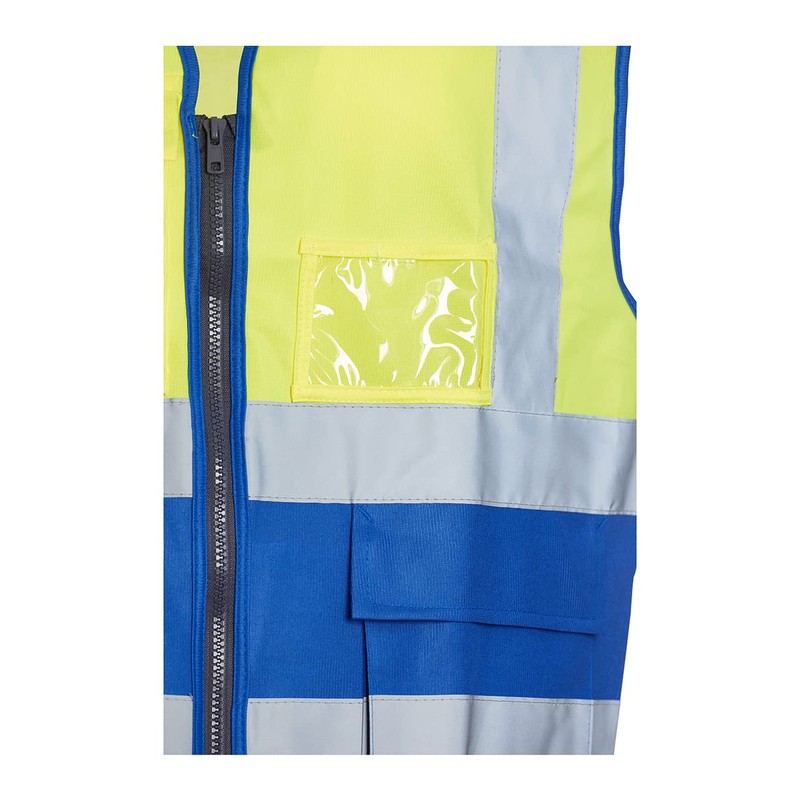 Blackrock Yellow & Blue Premium Hi Vis Vest With Pockets, ID Pouch & Key Loop, Mens Womens Reflective High Vis Vests With Secure Zip, Safety Vest Security Clothing, Fully EN Certified - Size Large