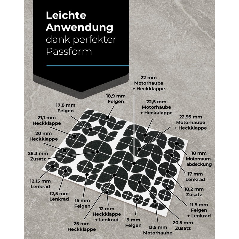 - Instructions included: The application of the emblem films is explained in the included assembly instructions (English language not guaranteed). The division of the individual corners can be found in our product image.