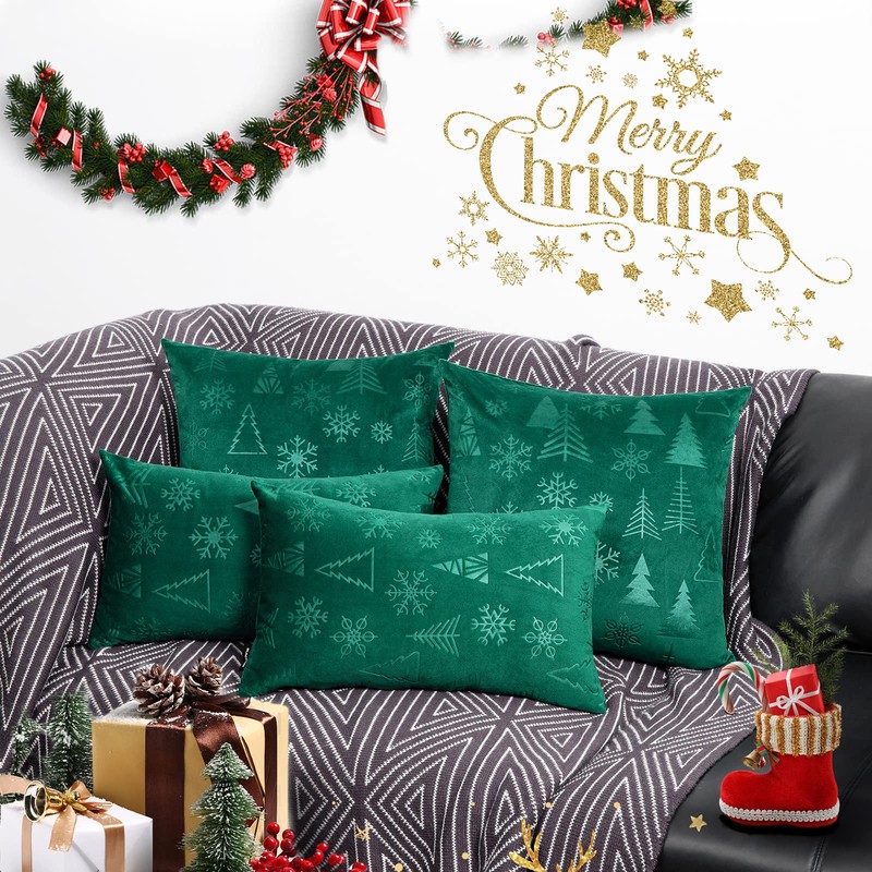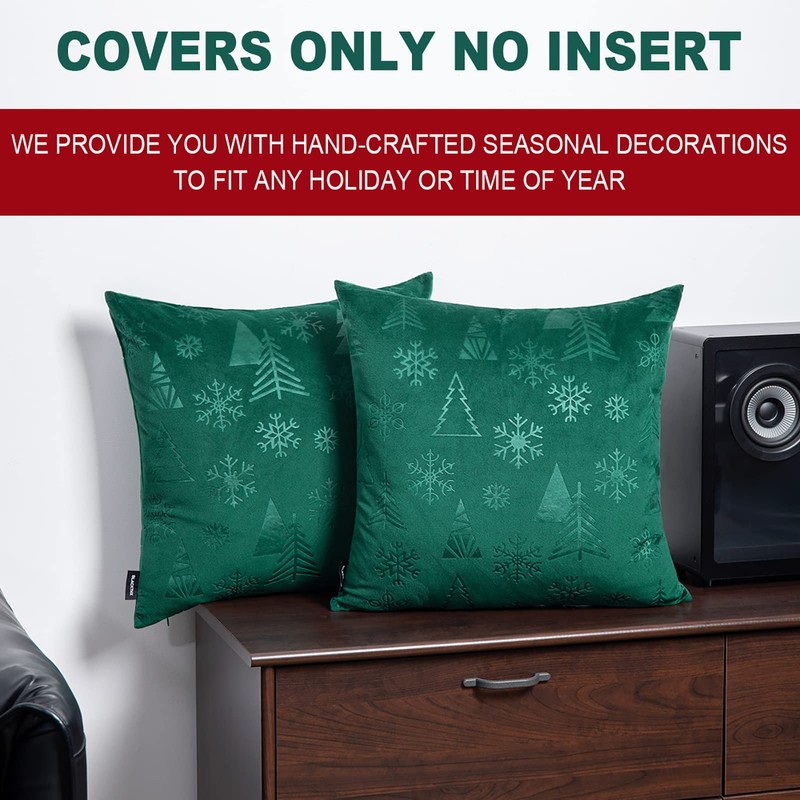 - 【Material】 The Christmas pillow covers made by soft velour fabric and double-sided Embossing ,Statement custom designed snowflake and Christmas tree print . It can make your pillow covers stand out in a pile of decorations.