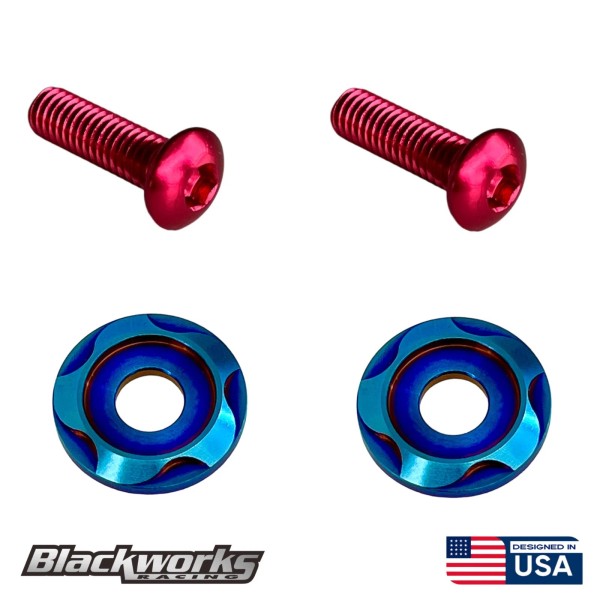 Blackworks Racing 2 TITANIUM BURNT LICENSE PLATE ANTI THEFT HEX SECURITY BOLTS WASHERS SCREWS RED