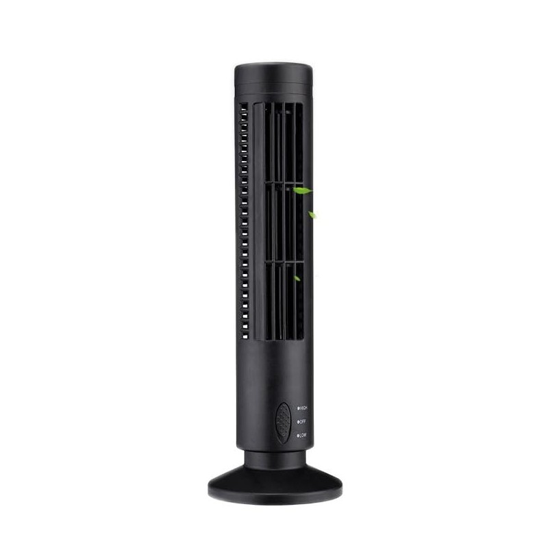 Bladeless Tower Fan, Quiet Portable Desk Fan with 2 Speeds, USB Powered for Home Bedroom Office (Black)