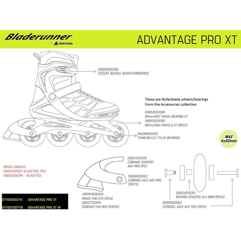 - BLADERUNNER WHEELS - 80mm wheels with ABEC 7 bearings for moderate speed with less effort