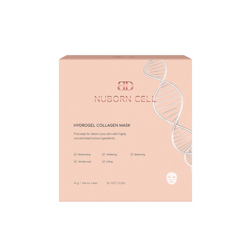 BLANC DUBU Nuborn Cell Hydrogel Collagen Mask | Advanced Stem Cell Face Mask for Dry Skin | 2% Niacinamide, Peptides, Collagen, and Hyaluronic Acid | Made in Korea, (4 masks) Pack of 1