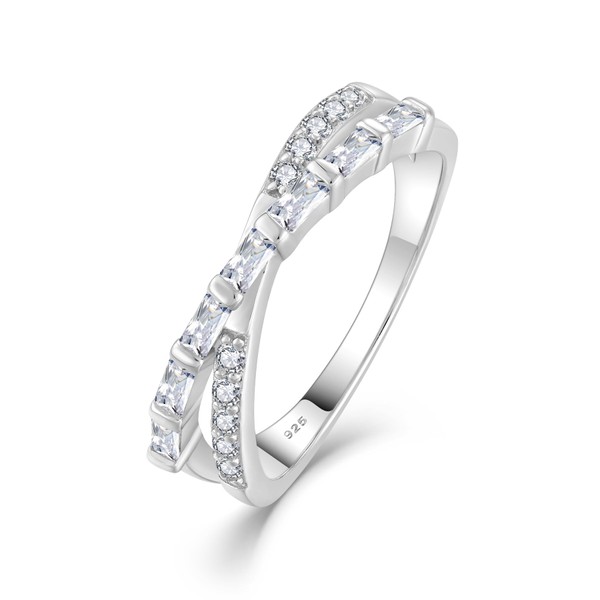 Blaniy 925 Sterling Silver Stackable Rings for Women Cross Line Wedding Band Promise Engagement Anniversary Half Eternity Ring Cubic Zirconia April Birthstone Jewelry Gifts for Women Size 8