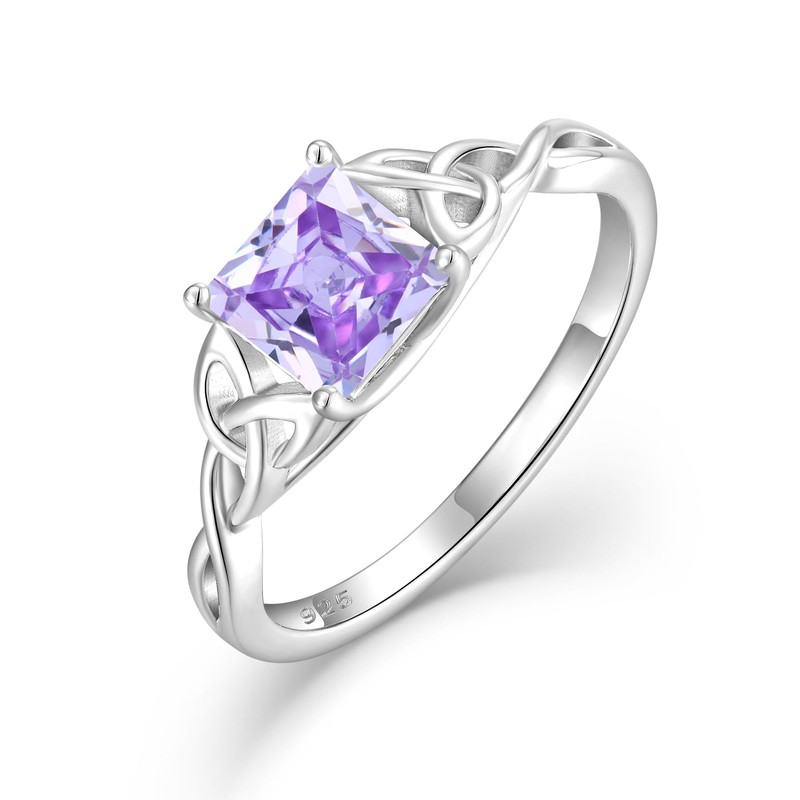 Blaniy Celtic Knot Ring 925 Sterling Silver Princess Cut Promise Engagement Ring Trinity Irish Ring Alexandrite June Birthstone Jewelry Gifts for Women Size 5