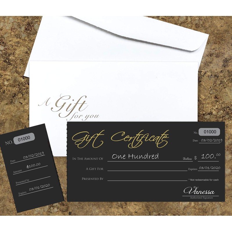 - Sequential numbering printing on two sides one is on stub and main gift certificates for tracking record.