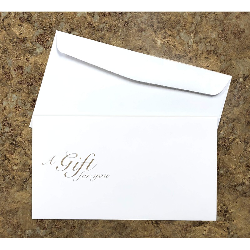 - 25pcs set of blank gift certificates (printed on 14pt classic matte paper) with matching envelopes.