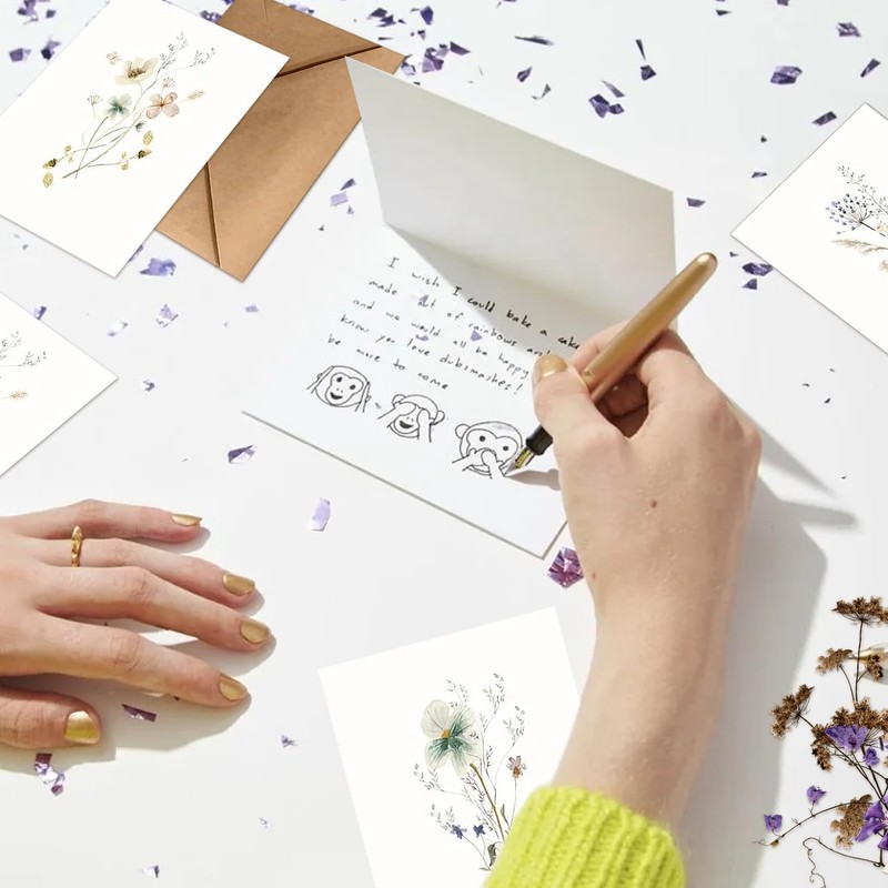 - 【Elegant Design】Our blank greeting cards feature elegant floral designs and are paired with textured kraft paper envelopes to highlight your unique taste. Whether it is used for business thank you or greetings to relatives and friends, your handwritten letters will be more quality.