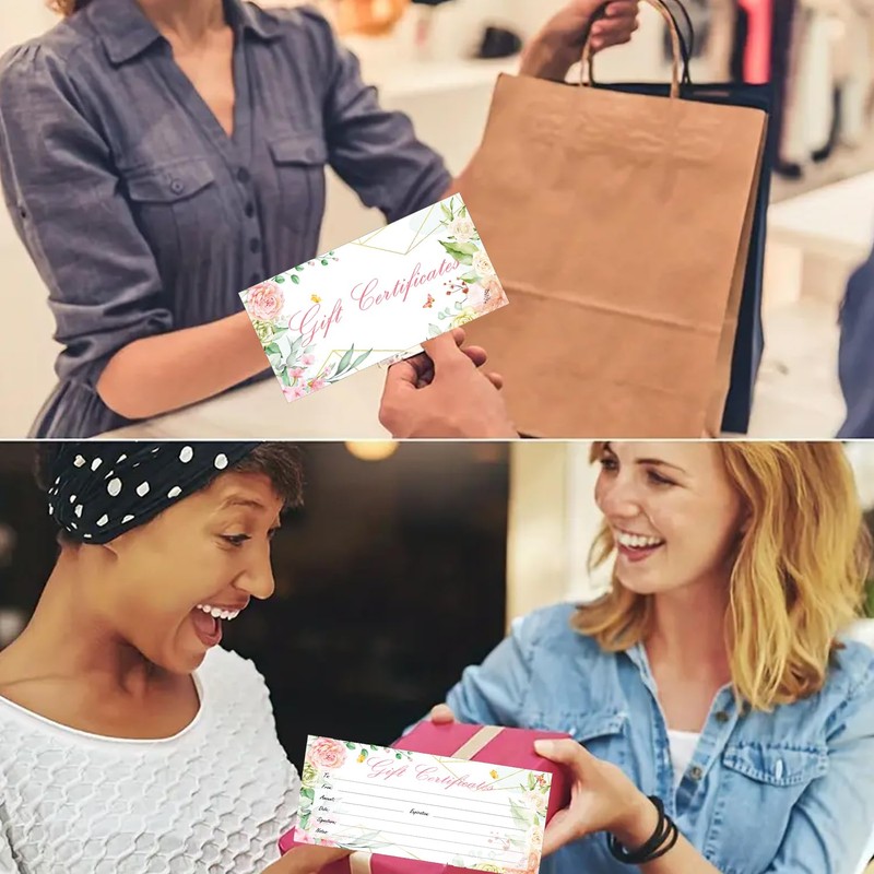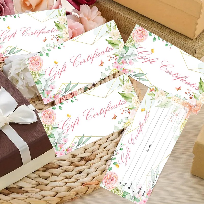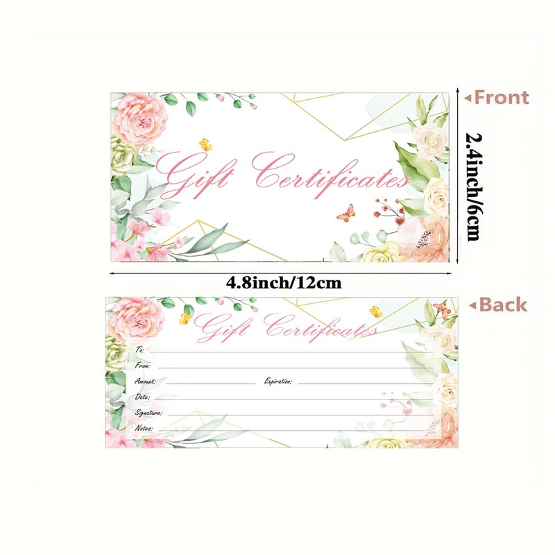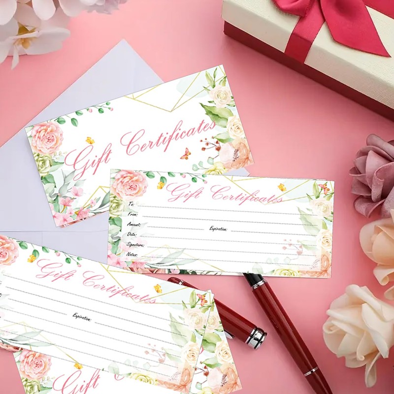 - You will receive 50 pcs blank gift envelopes and 50 gift certificate cards each, Business Floral Certificate Cards enough to meet your daily needs and put a good impression on your small business!
