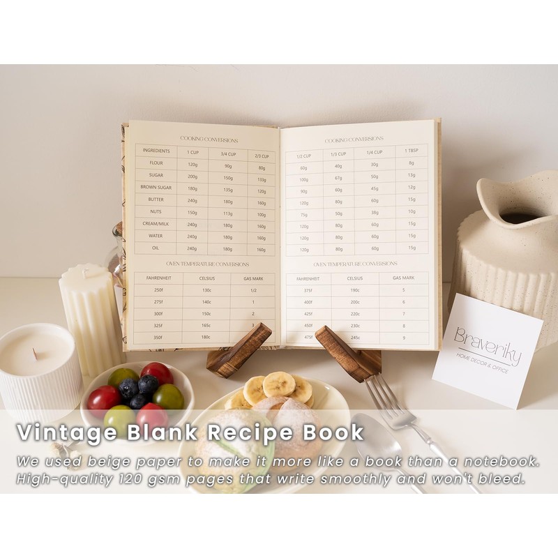 • Easy to Use: Index page and page numbers allow you to find recipe items faster. The conversion table helps you convert results in a second! The recipe book has a generous 2-page per recipe layout to write on and can store up to 70+ of your favourite kitchen creations.