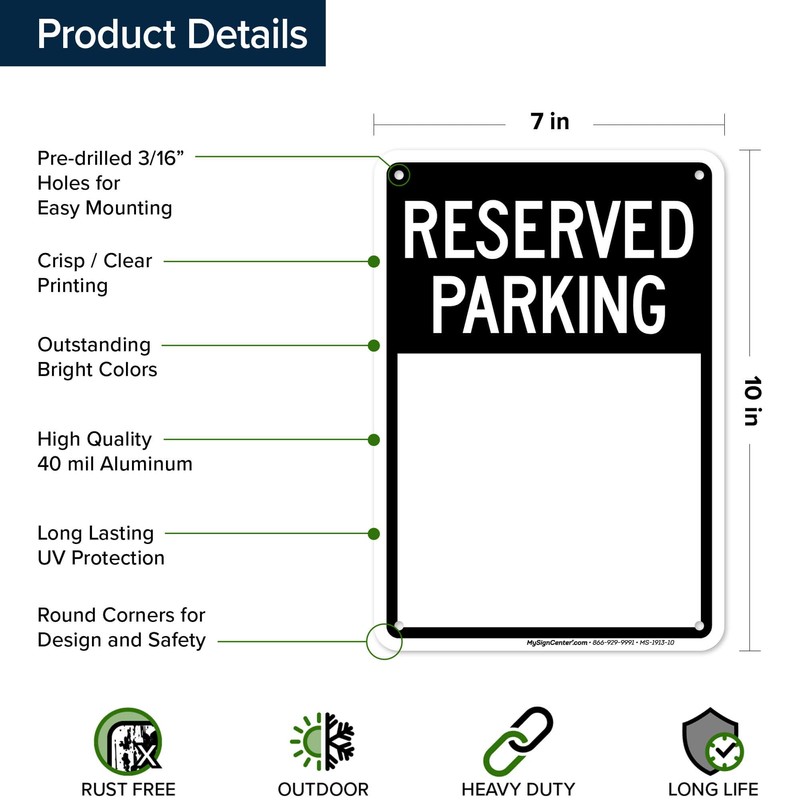 Blank Reserved Parking Sign, 7x10 Inches, Rust Free .040 Aluminum, Fade Resistant, Made in USA by My Sign Center