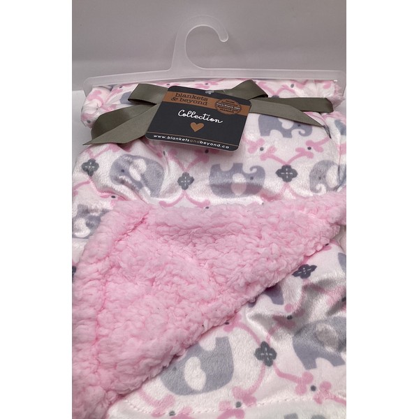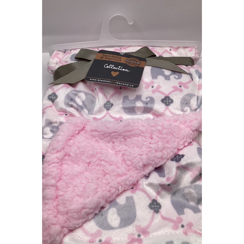 Blankets & Beyond Baby Blanket Pink Gray Elephant Print Security Blanket New Tag