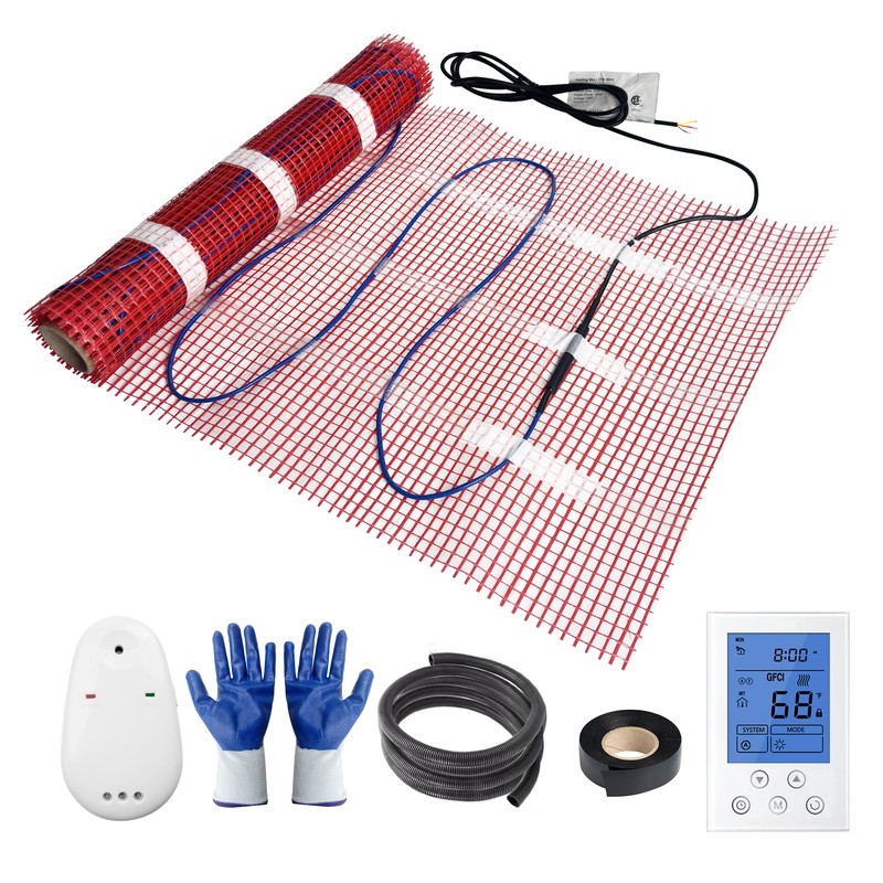 - LUXURY AND COMFORT: Heated Floor System Includes 30 sq. ft. (120 Volt) Floor Heating Mat, Cable Monitor/Alarm, Programmable Thermostat with Floor Sensor. For installation under tile, laminate, and more.