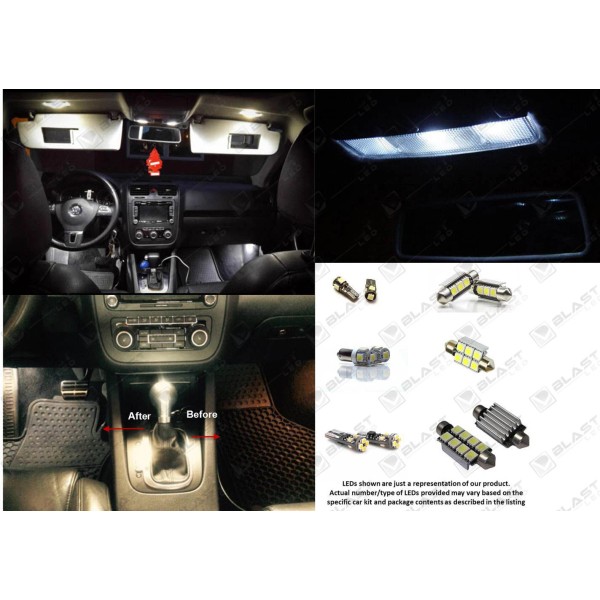 BLAST LED Interior lights for 1998-2005 Volkswagen Passat B5. LED lights are higher light output and are far more efficient. BLAST LED kit features 16pc xenon white led lights. This car lighting kit is configured to come with all the lights you need for the interior.