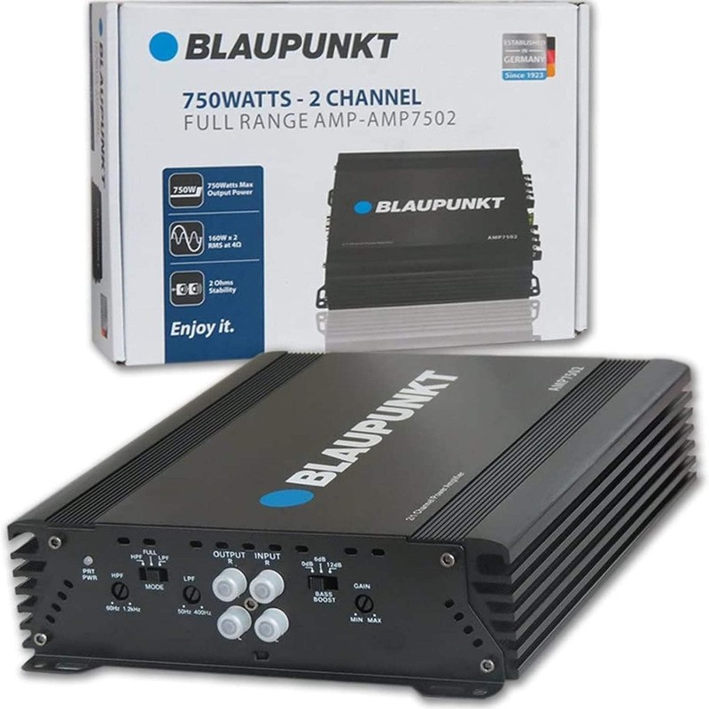 Blaupunkt AMP-7502PRO 750W 2-Channel Amplifier Class AB - Compact Slim Design, Full Range, Crossover, Gain Adjustable