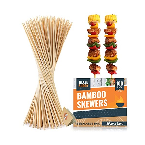Blaze Buddy 100pk Bamboo Skewers 30cm | Wooden BBQ Skewers | Ideal as Kebab S...