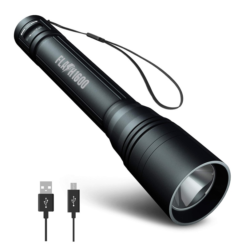 - [SUPER BRIGHT] Our 1600 lumens rechargeable LED flashlight has 300 yards of visibility. Unparalleled security with a super bright LED flashlight that can light up your backyard or entire parking lot to safely walk back to your car.