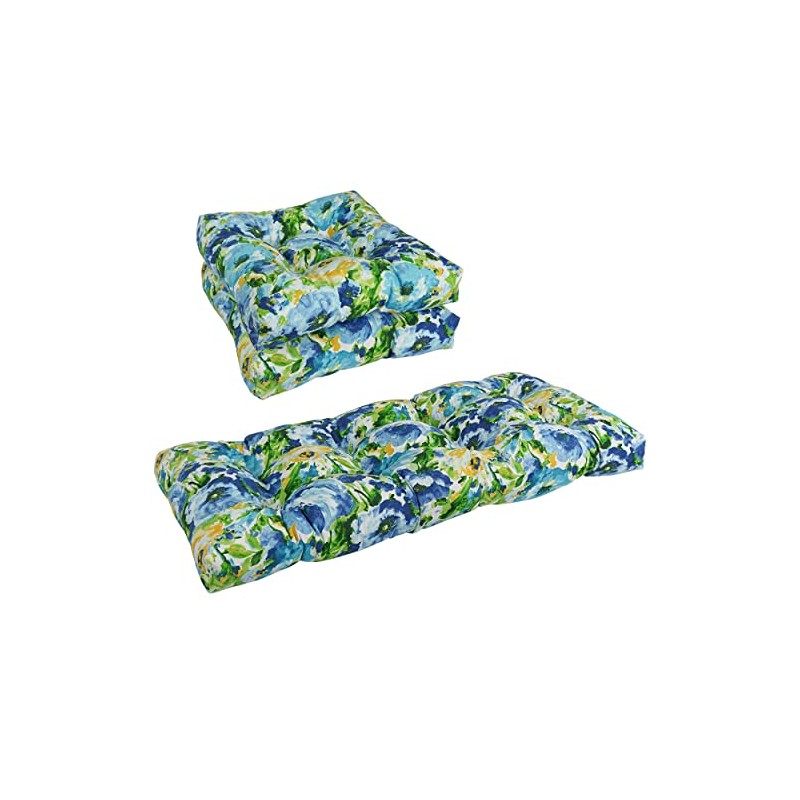 Blazing Needles Outdoor Tufted Settee Cushion Set, Lesandra Sunblue 3 Count