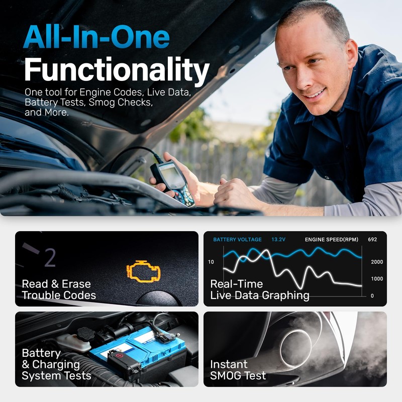 • [Precision Monitoring & Analysis] - Elevate your diagnostic experience with our OBD2 scanner's live data graphing feature. Perfect for in-depth monitoring of your vehicle's real-time performance, this tool ensures you receive accurate error code interpretations for a broad range of vehicles including cars, SUVs, light trucks, and 12V diesels equipped with OBD2. A must-have for optimal vehicle performance assessment.