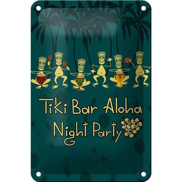 Blechschild 18 x 12 cm Tiki Bar Aloha - Night Party - DekoNo7