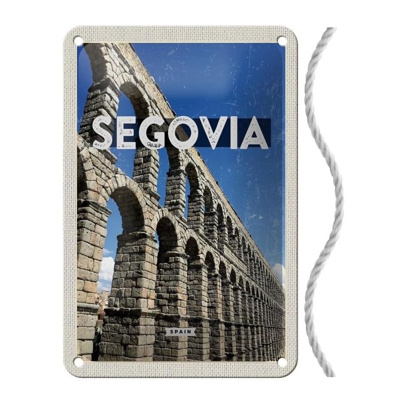 Blechschild mit Kordel 18 x 12 cm Spanien Reise Urlaub Schild: Segovia Spain römische Aquädukte - Blechemma