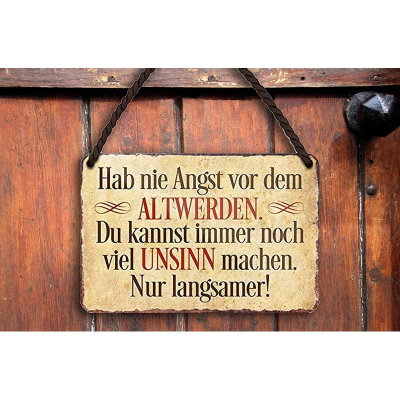 - Funny saying: "Hab nie Angst vor dem Altgehen" curved sheet metal and rounded corners make this hanging metal sign an absolute eye-catcher. Fun gift idea as a birthday or Christmas gift. Ideal for dad, mum, grandpa, grandma, parents