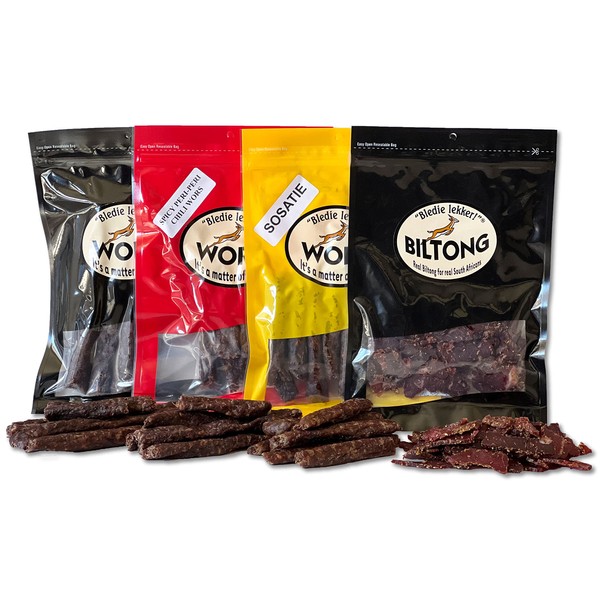 - This 4-Pack Sampler includes authentic South African Biltong, Droewors, Sosatie Droewors, and Spicy Peri-Peri Chili Droewors!