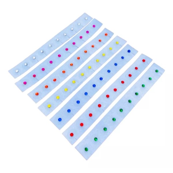 Presentación en tiras, cada tira contiene 10 piezas de balines con parche transparente decorado con piedra