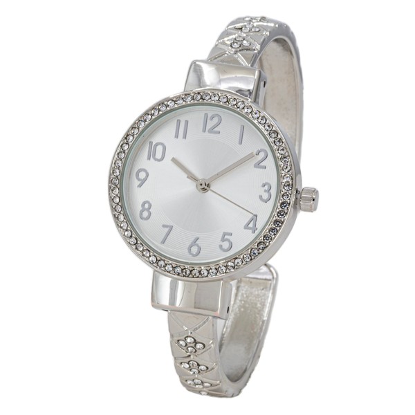 Blekon Collections Womens 32mm Case Plaided Designed Rhinestone Cuff Bangle Watch (Silver)