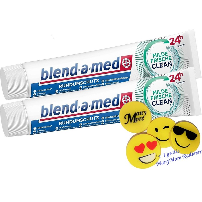 - 2 x Blend-a-med mild fresh clean toothpaste 75 ml + 1 free eraser (from ManyMore Onlinehandel)