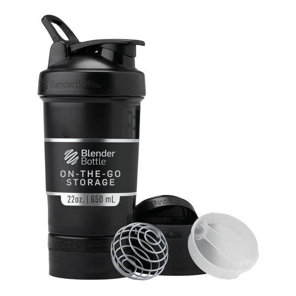 - Includes 22-oz. capacity BlenderBottle shaker (markings to 16 oz.), 150 cc jar, 100 cc jar, pill organizer, and patented BlenderBall whisk
