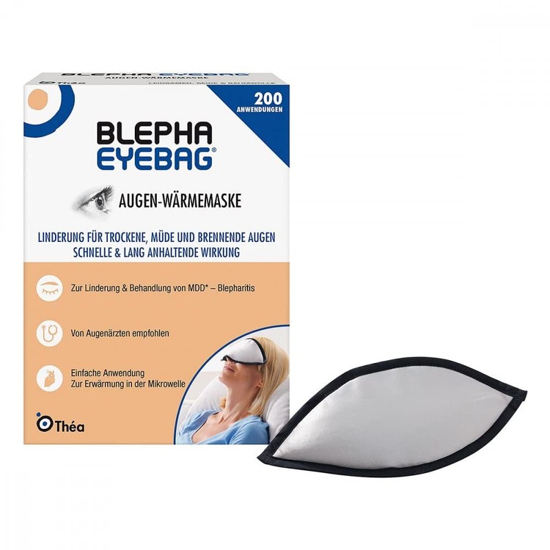 Effects of Blepha Eyebag eye warming mask (pack size: 1 piece).The Meibomian glands sit on the upper and lower edges of the eyelid. These release a fatty secretion, which serves to moisturise and clean the eye surface and ensures a good distribution of the tear film. As soon as normal gland function is disturbed, the fatty secretion changes to a viscous sebum, which clogs the glands. This leads to insufficient moistening of the eye surface. In cases of MDD, blepharitis and related conditions such as dry eyes, hail grain and barley grain, heat treatment of the eyes is recommended as the first step of an eyelid hygiene routine.
