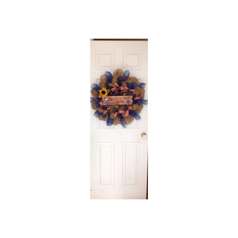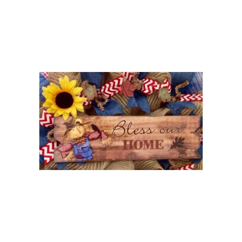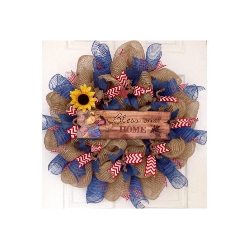 Bless Our Home Autumn Deco Mesh Wreath With Scarecrow And Sunflower