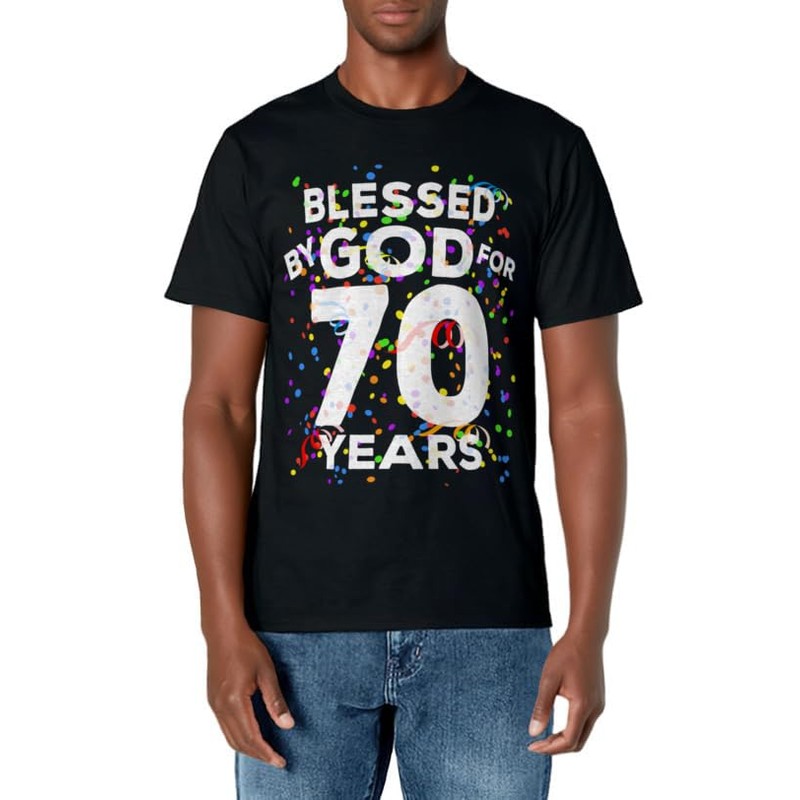 - This novelty blessed 70 shirt is also special keepsake devotional religious gifts presents for faith Christian Catholic Methodist Baptist church brother sister, with God's love positive affirmation; for fathers mothers day easter Christmas anniversary.